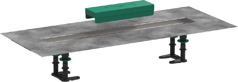 - состоит из: слив из нержавеющей стали, предварительно смонтированная уплотнительная мембрана, ножки для регулировки высоты, инструмент для укладки плитки;