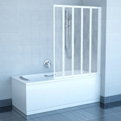 Складывающаяся шторка для ванны Ravak VS5 белый+рейн шириной 113,5 см.