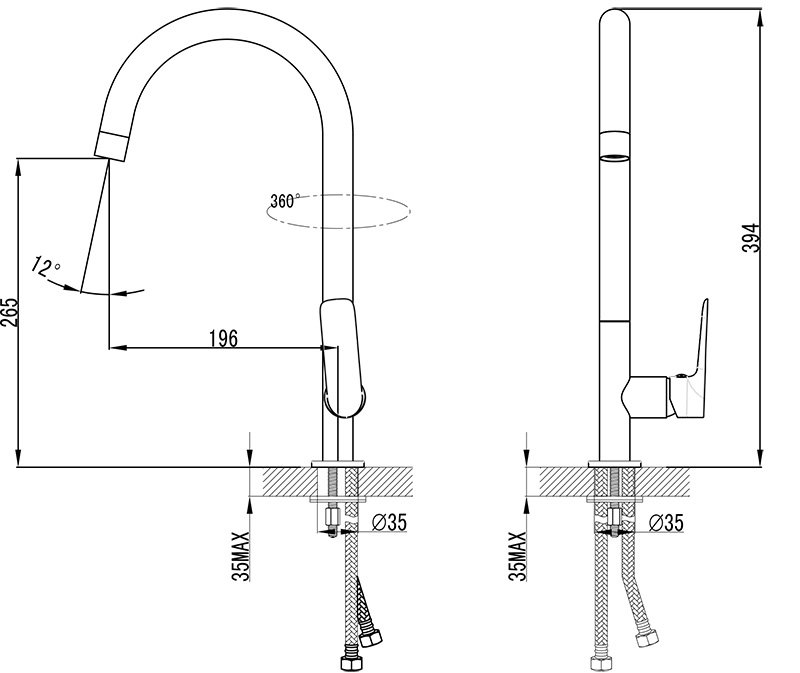 - гибкий соединительный шланг длиной 400 мм, диаметр G3/8;